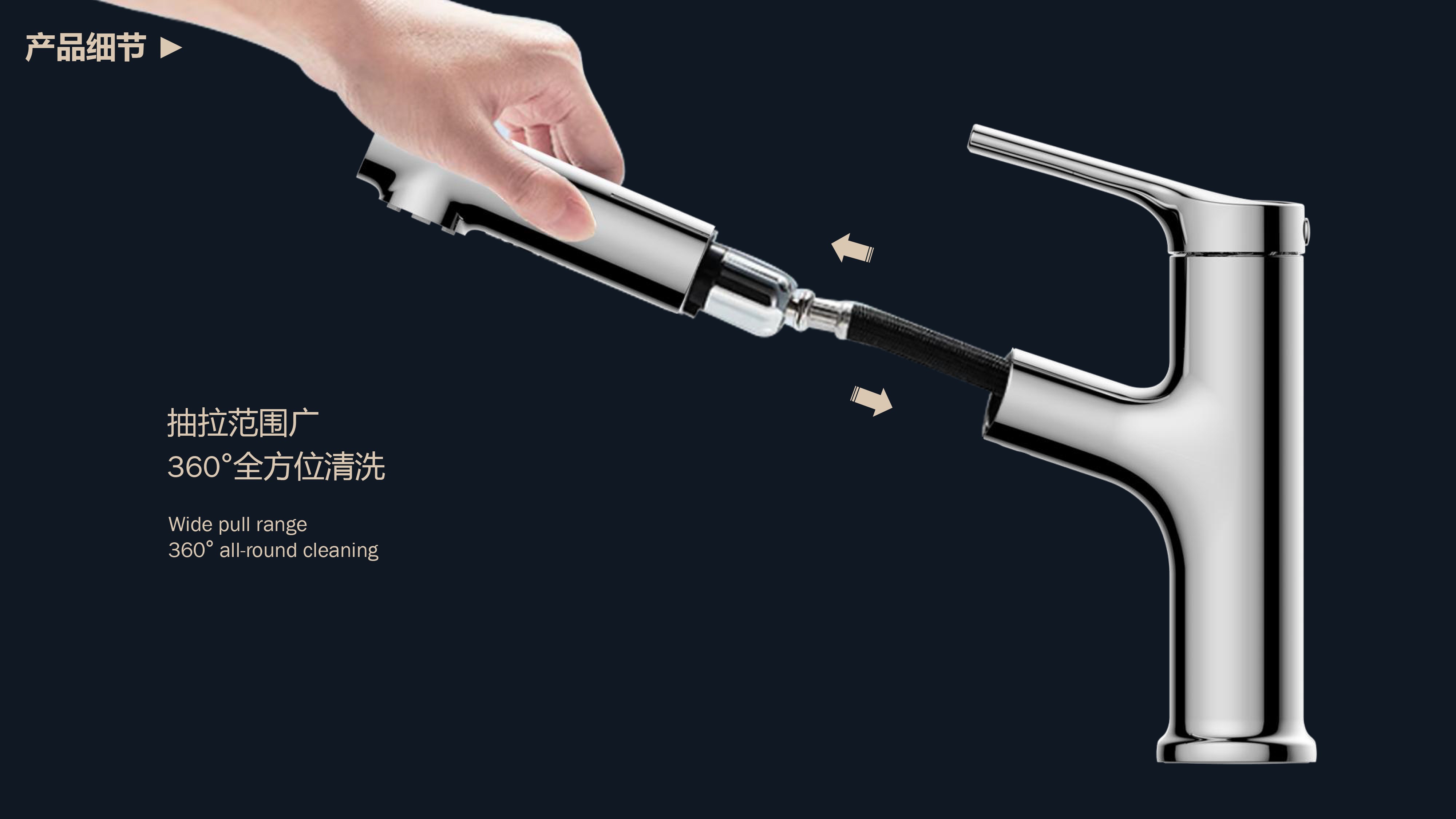 出水溫度實(shí)時(shí)看得見,解鎖龍頭舒適用法;抽拉范圍廣,360°全方位清洗;日常洗頭利器,龍頭抽拉出水輕松洗;氣泡水有效防濺,柔和親膚,潔凈省水;重力錘復(fù)位系統(tǒng),順暢伸縮,精準(zhǔn)回位