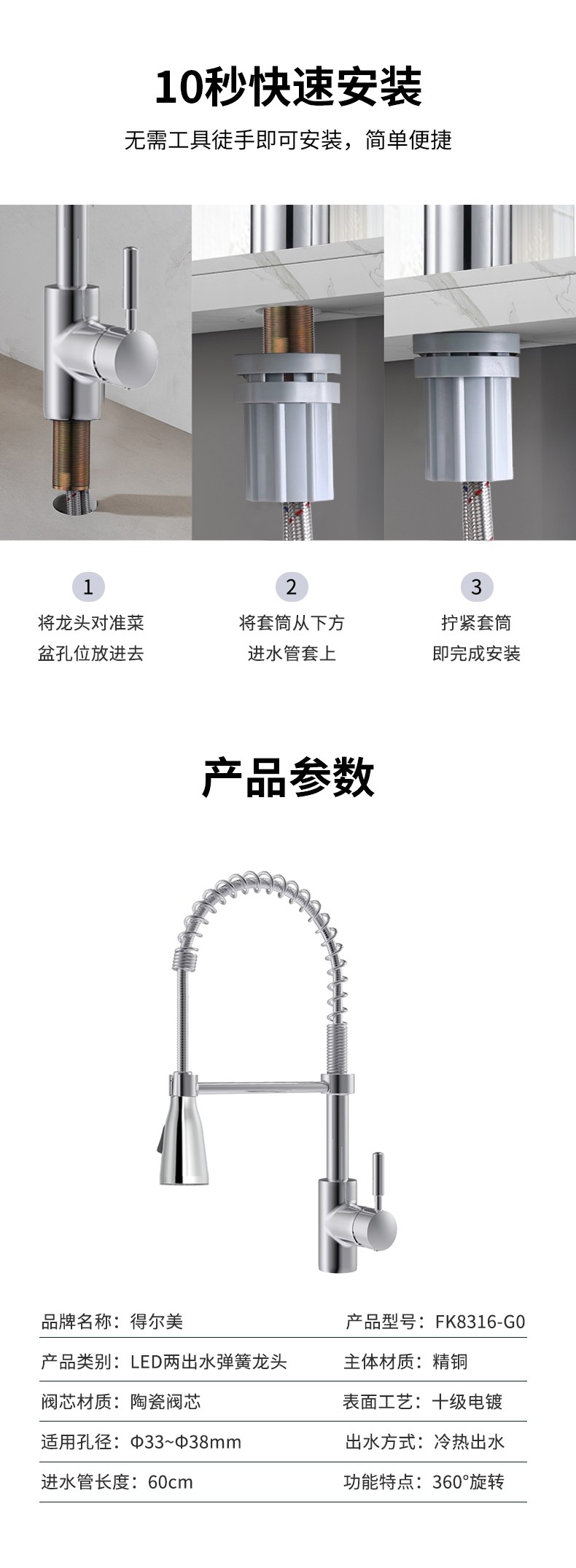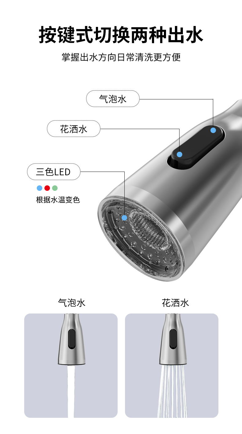 FK8316-F0 LED燈光顏色顯示水溫廚房彈簧龍頭